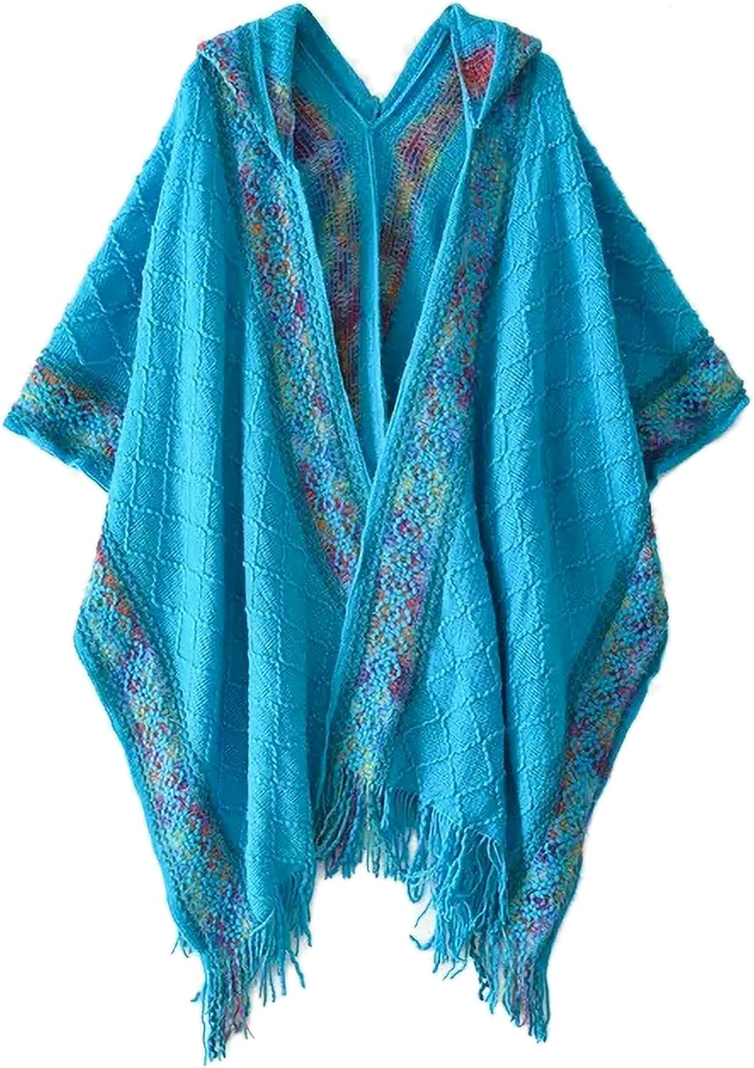 - Warm Shawl Wraps for Women: Shawl sweater for women designed with hoodies, open front, tassels, colorful border, warm, soft, elegant.It is very classy and versatile for you to wear as a poncho, shawl wrap, cape, blanket, cardigan or a scarf