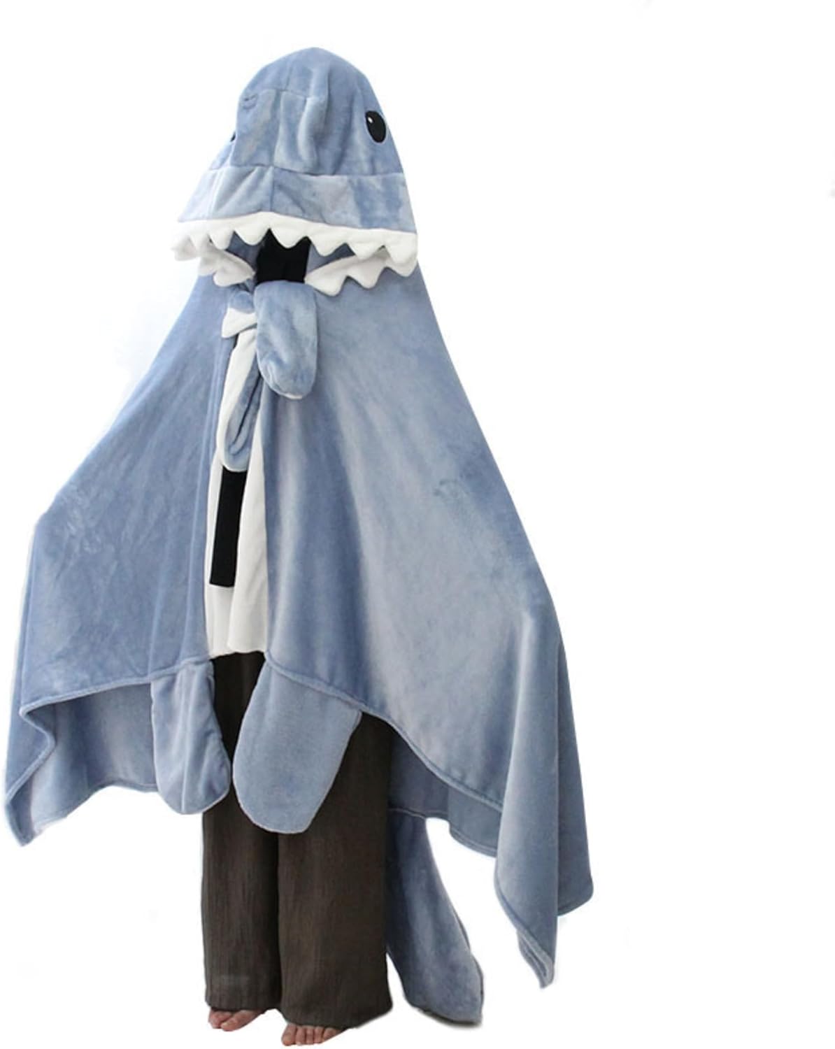 Shark Cosplay Blanket Wearable Flannel Fleece Throw Hooded Cloak Shawl Wrap Nap Sleeping Bag Flannel Cape Hoodie (Blue, fit height 60-80inch)